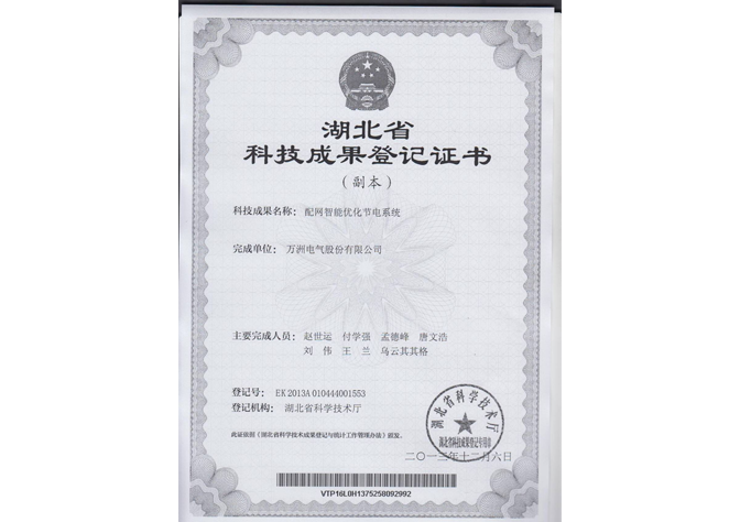 湖北省科技成果登記證書