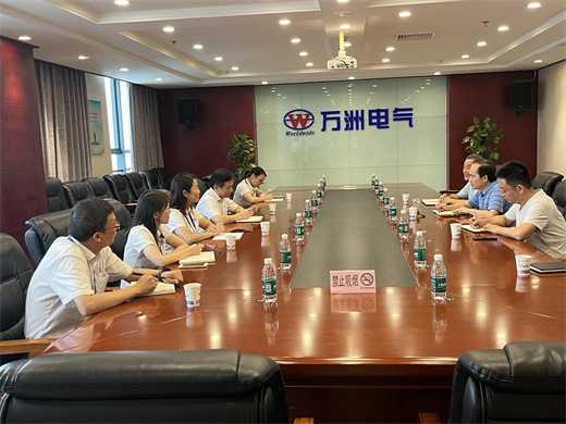 7月27日下午,襄陽市市場監督管理局黨組成員田德偉帶領業務科室人員到萬洲調研,萬洲電氣董事長、總經理趙世運接待了田局長一行。