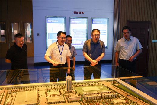 萬洲電氣黨委書記、副總經理李明輝陪同齊局長一行參觀了公司文化展示廳,介紹了公司發展歷程、科技創新、文化建設、黨群工作、社會責任履行等情況。