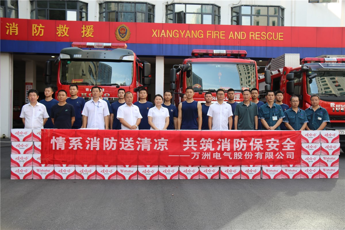 炎炎夏日送清涼,絲絲關愛入心田。7月24日下午,萬洲電氣黨委、工會、安委會組成的聯合小分隊來到襄陽市消防救援支隊參觀交流,并送上防暑降溫物資奮戰在一線的消防戰士們送上夏日的涼爽。