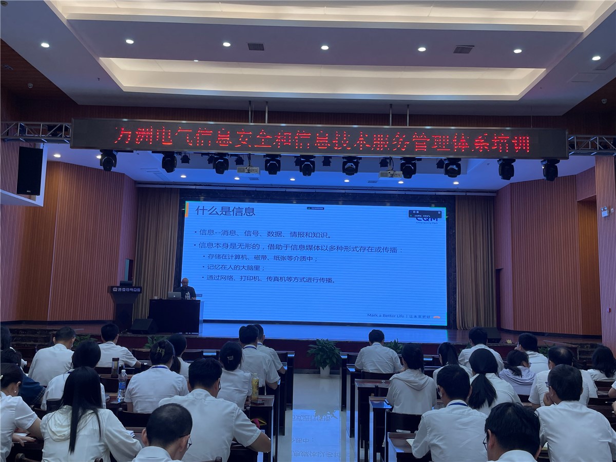 為推進公司建立信息安全、信息技術管理體系,并確保信息化體系有效運行。8月16日下午至8月17日,萬洲電氣專門邀請了方圓標志認證集團湖北有限公司的周老師到公司開展“信息安全、信息技術”管理體系公共培訓。