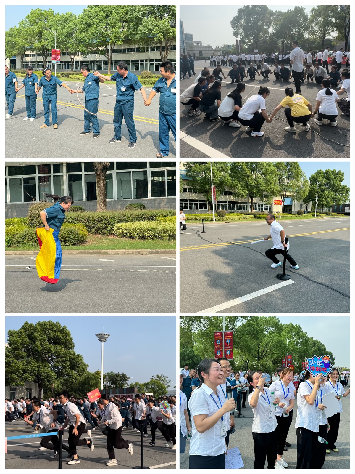 隨后,廠慶趣味運(yùn)動(dòng)會(huì)正式拉開帷幕,“呼啦圈過山車、水果蹲、歡樂袋鼠蹦蹦蹦、奔跑吧,萬洲等項(xiàng)目熱鬧開場。“預(yù)備,開始!”隨著裁判員的一聲令下,“呼啦圈過山車”項(xiàng)目最先開賽,參賽隊(duì)員齊心協(xié)力、依次傳遞呼啦圈,真如過山車一般;“水果蹲”項(xiàng)目考驗(yàn)各大隊(duì)成員集體應(yīng)變能力,你蹲我起,此起彼伏,一時(shí)間,加油聲、歡笑聲在廠區(qū)洋溢;在歡樂袋鼠蹦蹦蹦項(xiàng)目,選手們像可愛的袋鼠一樣蹦跳著接力前進(jìn),充滿了活力,激揚(yáng)著青春。奔跑吧,萬洲”分為越障接力賽和全員沖刺跑,選手們你追我趕,盡情釋放著運(yùn)動(dòng)的激情,展示萬洲人拼搏的風(fēng)采