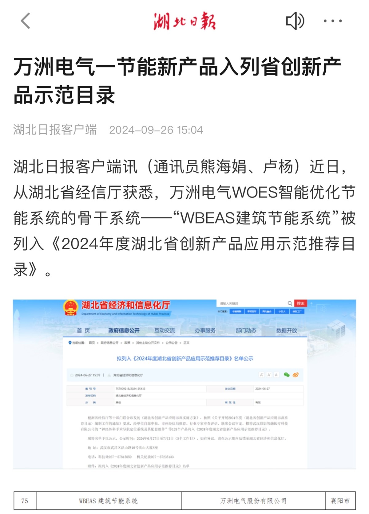 【湖北日報】萬洲電氣一節(jié)能新產(chǎn)品入列省創(chuàng)新產(chǎn)品示范目錄