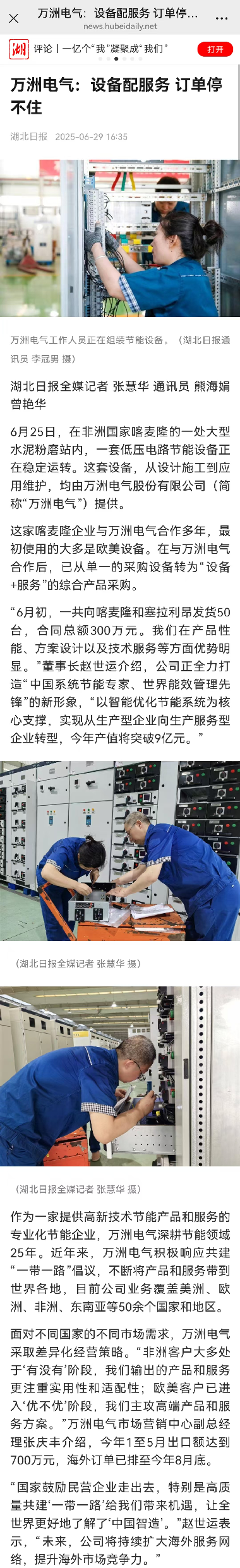 【湖北日報客戶端】萬洲電氣:設備配服務,訂單停不住
