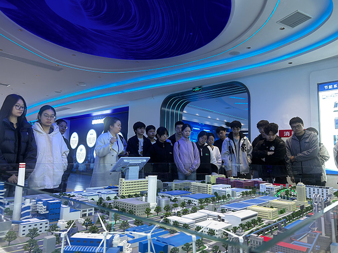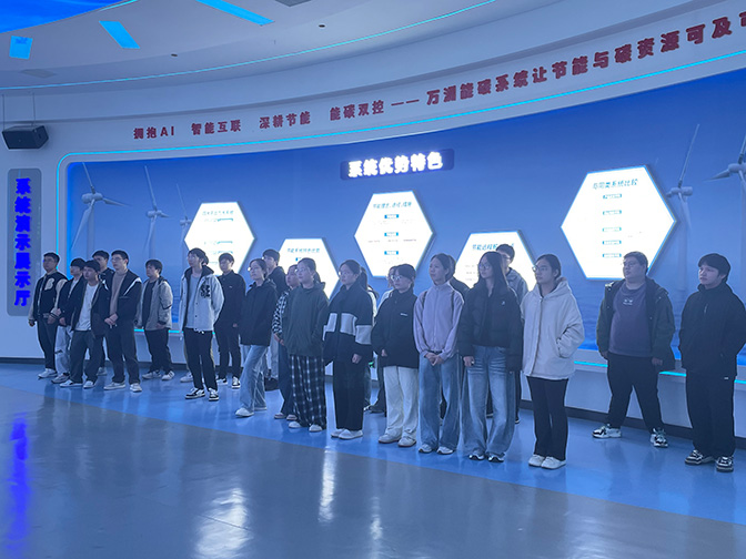 實習(xí)第一天,同學(xué)們首先參觀了公司廠區(qū),在一樓文化展示廳,創(chuàng)立之初的使命擔(dān)當(dāng)、以人為本的企業(yè)文化、碩果累累的國牌榮譽、深耕節(jié)能的行業(yè)標(biāo)桿,通過參觀讓同學(xué)們對萬洲有了全方位認(rèn)知。在WOES節(jié)能系統(tǒng)演示廳,萬洲重大科技創(chuàng)新產(chǎn)品——智能優(yōu)化節(jié)能系統(tǒng)的研發(fā)歷程、優(yōu)勢特色、應(yīng)用領(lǐng)域及未來發(fā)展吸引了同學(xué)們駐足觀看,并饒有興趣地現(xiàn)場體驗操作系統(tǒng)。