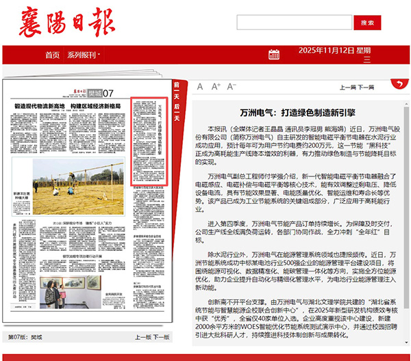 【襄陽日報】萬洲電氣:打造綠色制造新引擎