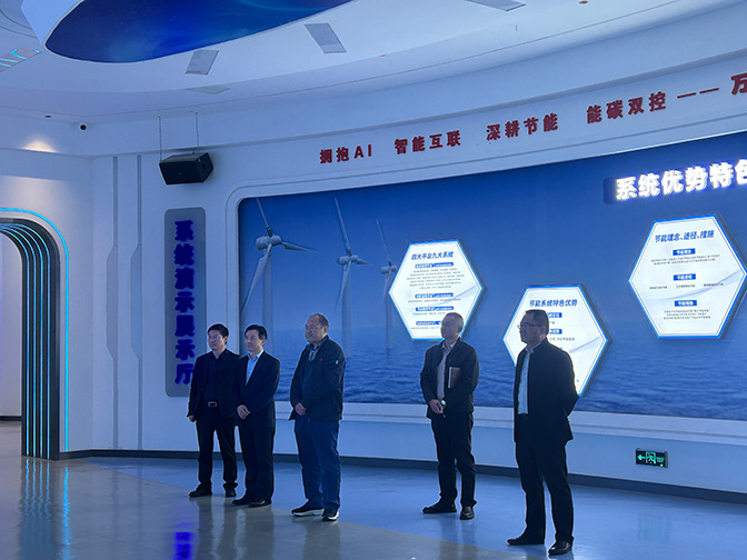 張?zhí)庨L(zhǎng)一行先后參觀了公司一樓文化展示廳與節(jié)能展廳,詳細(xì)了解萬(wàn)洲電氣發(fā)展歷程、科技創(chuàng)新成果、節(jié)能系統(tǒng)核心優(yōu)勢(shì)及能碳管理平臺(tái)應(yīng)用情況,對(duì)公司在系統(tǒng)節(jié)能領(lǐng)域的深耕積淀與創(chuàng)新突破給予高度評(píng)價(jià)。