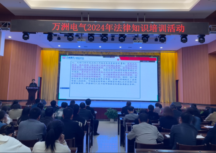 10月24日,萬洲電氣全體干部、市場大部、產(chǎn)品大部等相關(guān)部門人員70余人集聚一樓多功能廳,參加2024年法律知識相關(guān)培訓。