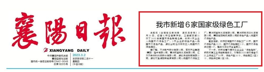 【襄陽日報】我市新增6家國家級綠色工廠