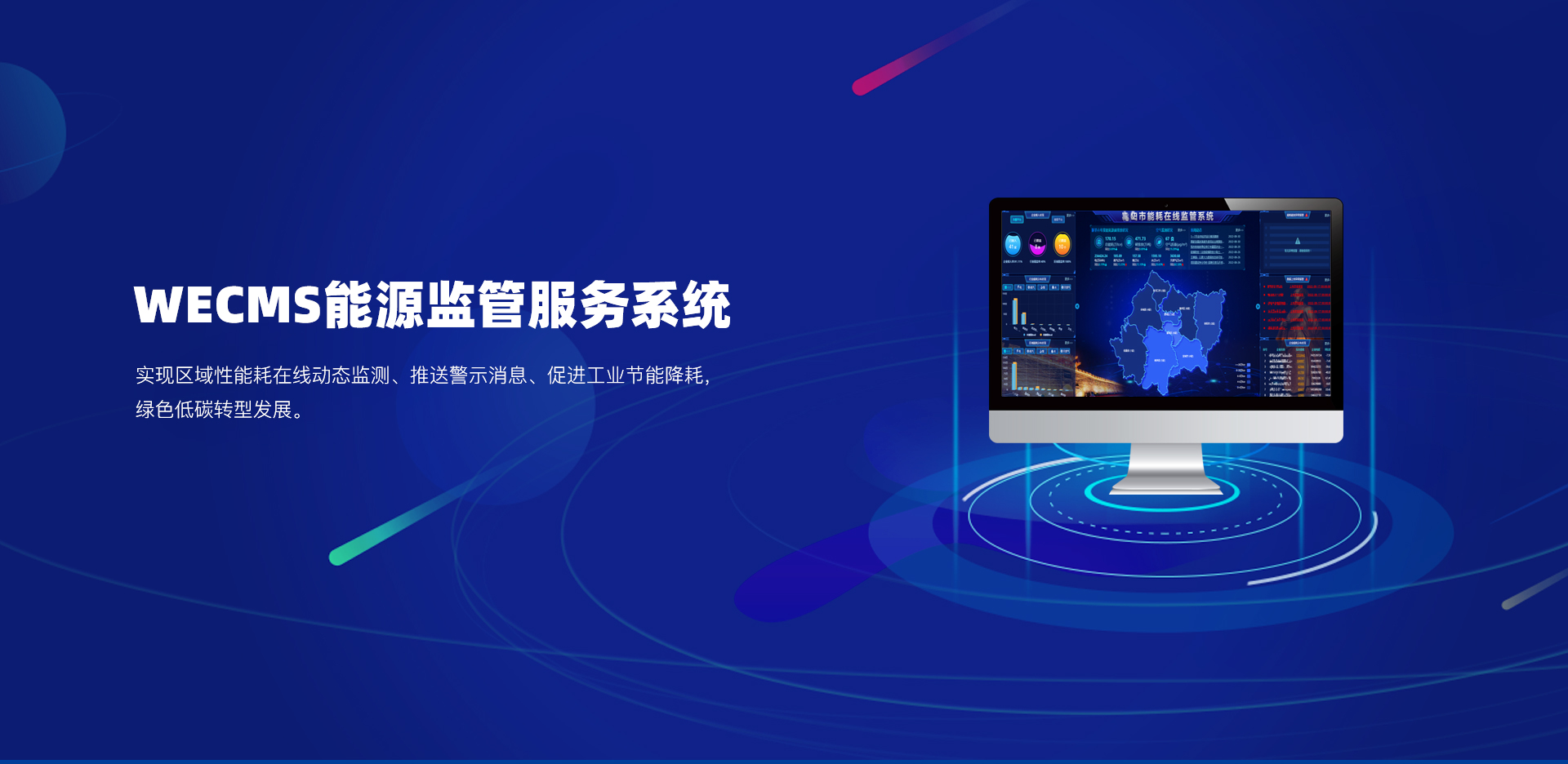 能源監管服務系統充分利用現代信息化、網絡化、大數據分析技術,通過建立政府級能源數據管理中心,形成集數據匯總、數據存儲為一體的節能減排數據庫,主要從耗能與碳排放兩方面對各行業重點用能單位的能源消耗量、能效水平進行實時監測、在線監管,建立科學的能源管理考核指標體系,為政府部門科學配置能源資源,統籌規劃節能管理工作提供重要科學依據,實現區域性能耗在線動態監測;利用大數據分析挖掘技術和在線分析診斷技術,及時發現能耗異?,F象并推送警示消息,促進工業節能降耗,綠色低碳轉型發展。
